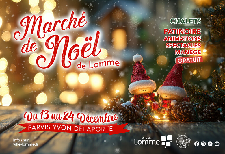 Le Marché de Noël revient du 13 au 24 décembre pour 11 jours d’idées cadeaux, de saveurs et d’animations. Patinoire synthétique au pied de l’Hôtel de Ville, petit train pour les moins de 10 ans, chalets des artisans et commerçants locaux, gourmandises, créations associatives… l’esprit des fêtes s’installe à Lomme.
