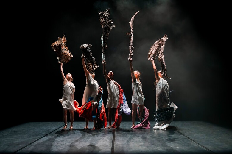 Tandis que les tissus volent, brillent, craquent, tournent, traînent ou tombent, leurs corps fusionnent, vibrent et se soulèvent. Ensemble, elles inventent une danse qui les extrait de la soumission et des carcans, puisant dans la joie leur liberté recouvrée.