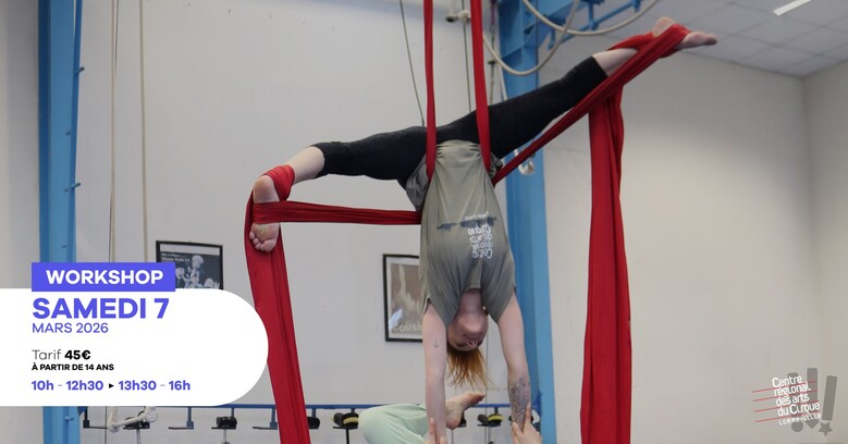 Ce workshop est animé par les artistes Eglantine DUCORNET & Emanuele PALUMBO, qui proposent un travail approfondi autour de la pratique dynamique sur la corde lisse et le tissu aérien. La journée sera axée sur l’utilisation de l’élan, les montées dynamiques, les changements de direction, les chutes contrôlées et les enchaînements techniques.